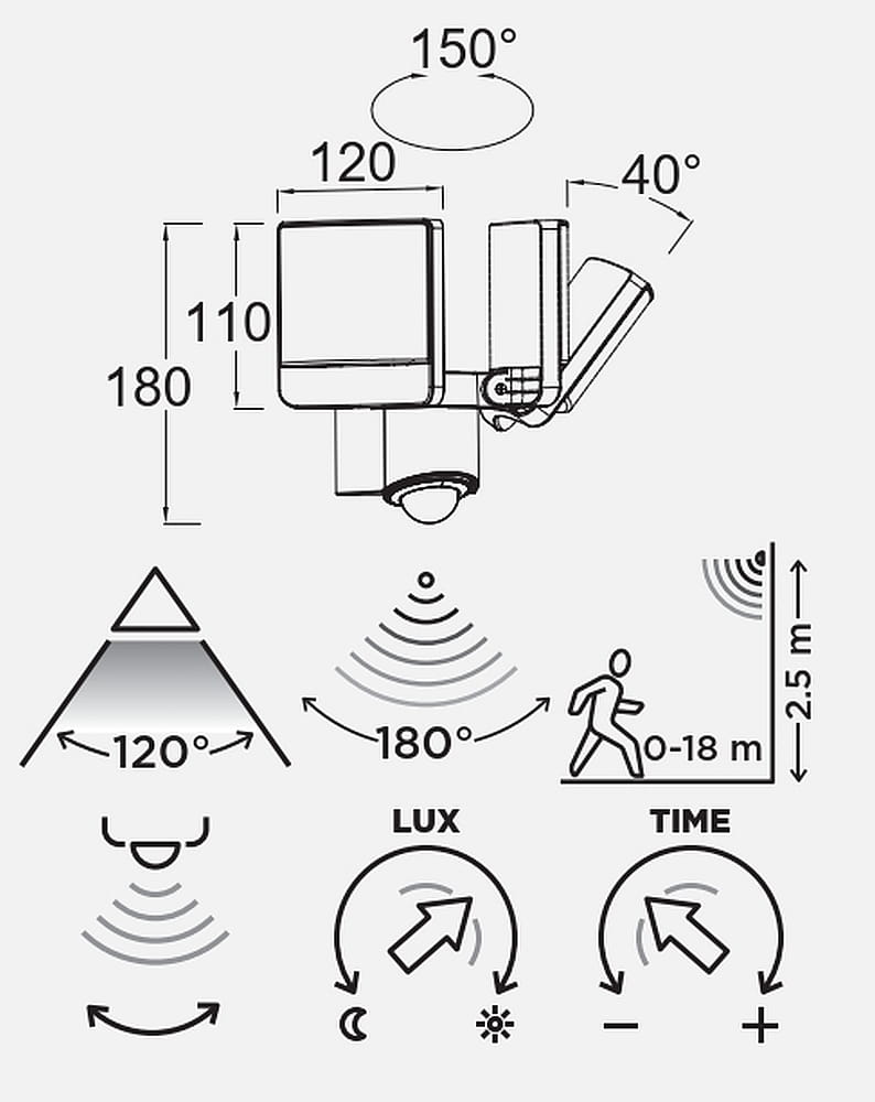 Naświetlacz SUNSHINE belgijskiego producenta oświetlenia Lutec to elegancja i moc. Idealny do oświetlania większych obszarów, takich jak podwórka i podjazdy. Prostokątna głowica może być regulowana w dwóch płaszczyznach: pionowej i poziomej. Naświetlacz został wyposażony w wysokiej jakości i w pełni regulowany czujnik ruchu PIR z zasięgiem wykrywania do 18 metrów. Produkt posiada 5 lat gwarancji.