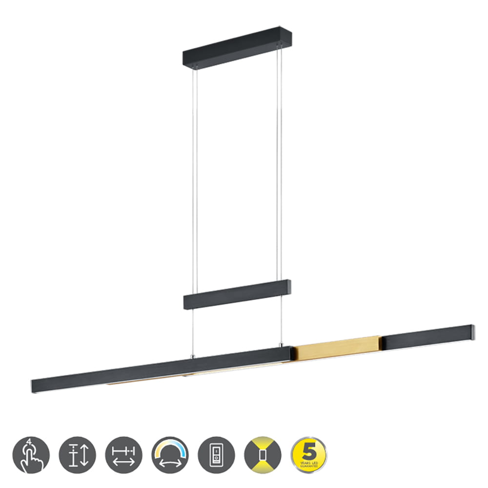Lampa wisząca TRAJAN Czarny mat | Mosiądz mat LED DIM 42W 2700K-5000K ściemnialna