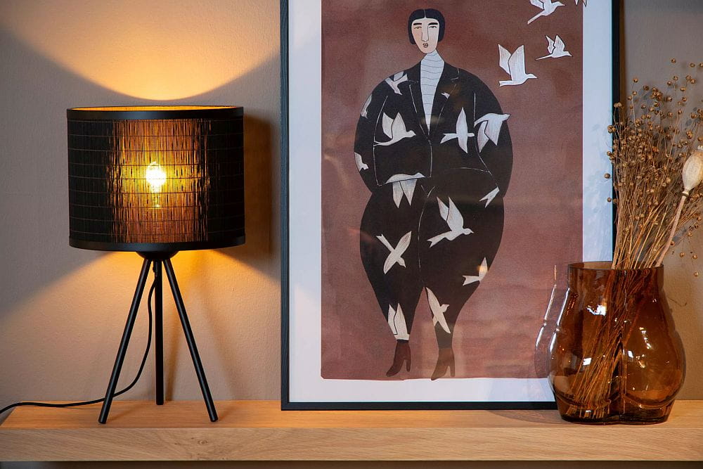 Tagalog czarny drewno Ø 26cm. E27 Lampka stołowa trójnóg