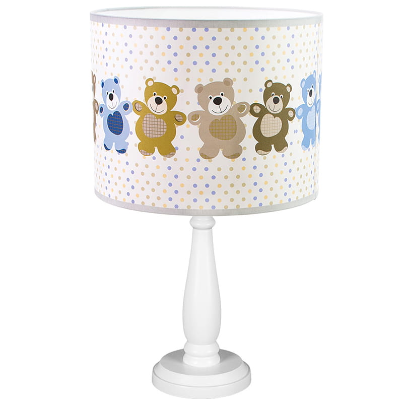 Dziecięca lampka stołowa, sprawdzi się nie tylko jako dekoracja pokoju, ale również spełni funkcjonalność podczas zabawy jak i nauki. Podstawa lampki wykonana z drewna, pokryta białą farbą. Posiadającą niezbędne atesty bezpieczeństwa dla dzieci. Uroku nadaje abażurek w Misie, który w razie zabrudzenia można przetrzeć suchą, lub wilgotną ściereczką, nie pozostawiając śladu. Ponadto cała lampka jest lekka wagowo , dzięki czemu można umieścić ją w dowolnym miejscu. Dzięki przepięknemu wzorowi lampka u przytulni pokój Twojego dziecka! Proponujemy używać żarówek o białej lub neutralnej barwie światła dla lepszego odwzorowania kolorów.