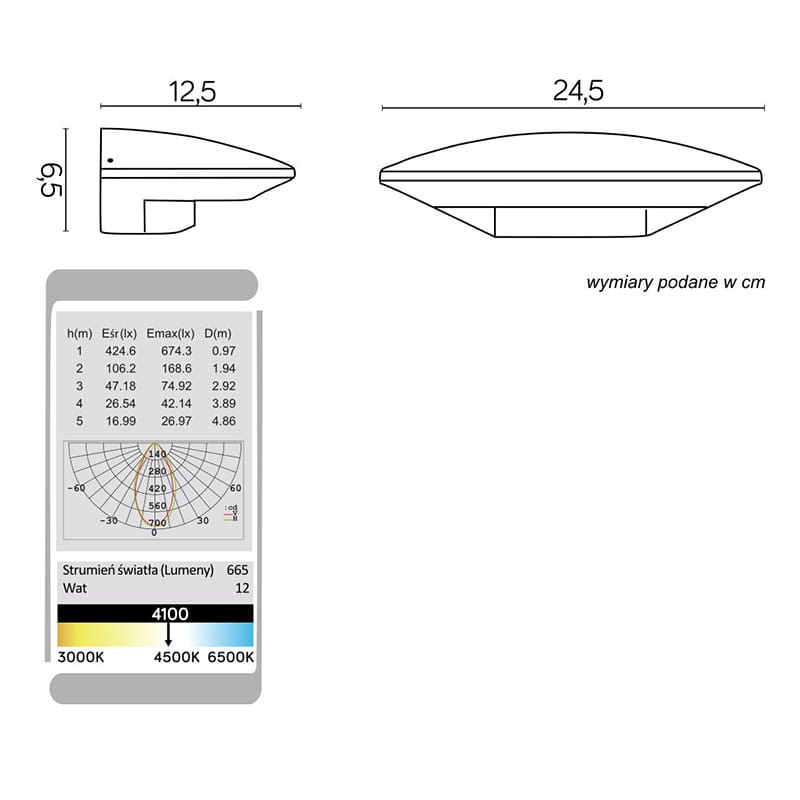 Strumień świetlny znamionowy: 665 lm