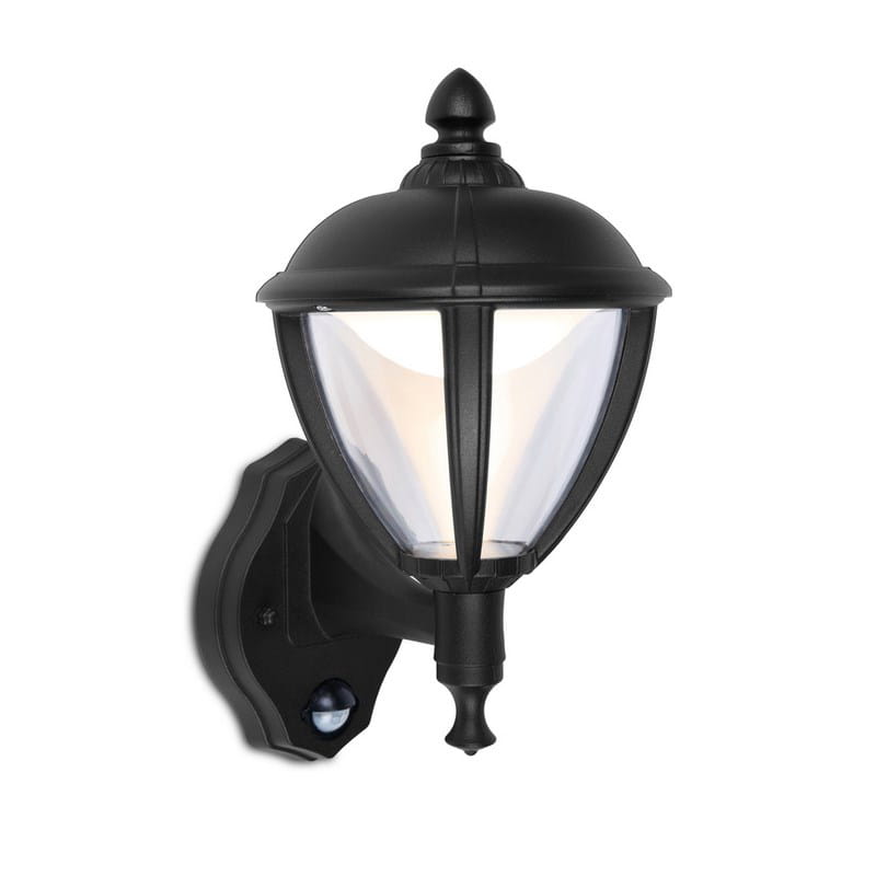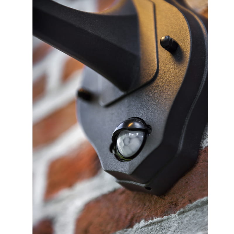 Kinkiet zewnętrzny UNITE belgijskiego producenta oświetlenia Lutec, to lampa w kolorze czarny mat wykonana z wytrzymałego na warunki atmosferyczne odlewu aluminium oraz odpornego na uderzenia dyfuzora z poliwęglanowego klosza. Tradycyjny wygląd kinkietu zewnętrznego UNITE oraz jego ciepłe i białe światło wprowadzi wyjątkowy nastrój do Twojego otoczenia. Kinkiet dodatkowo został wyposażony w regulowany czujnik ruchu PIR. Regulacja czujnika polega na ustawieniach dotyczących jasności świecenia, zasięgu oraz stopnia zaciemnienia otoczenia wywołującego działanie. Dzięki zintegrowanemu czujnikowi światło zapala się automatycznie, gdy tylko wykryje w swoim zasięgu ruch. Produkt posiada 5 lat gwarancji producenta.