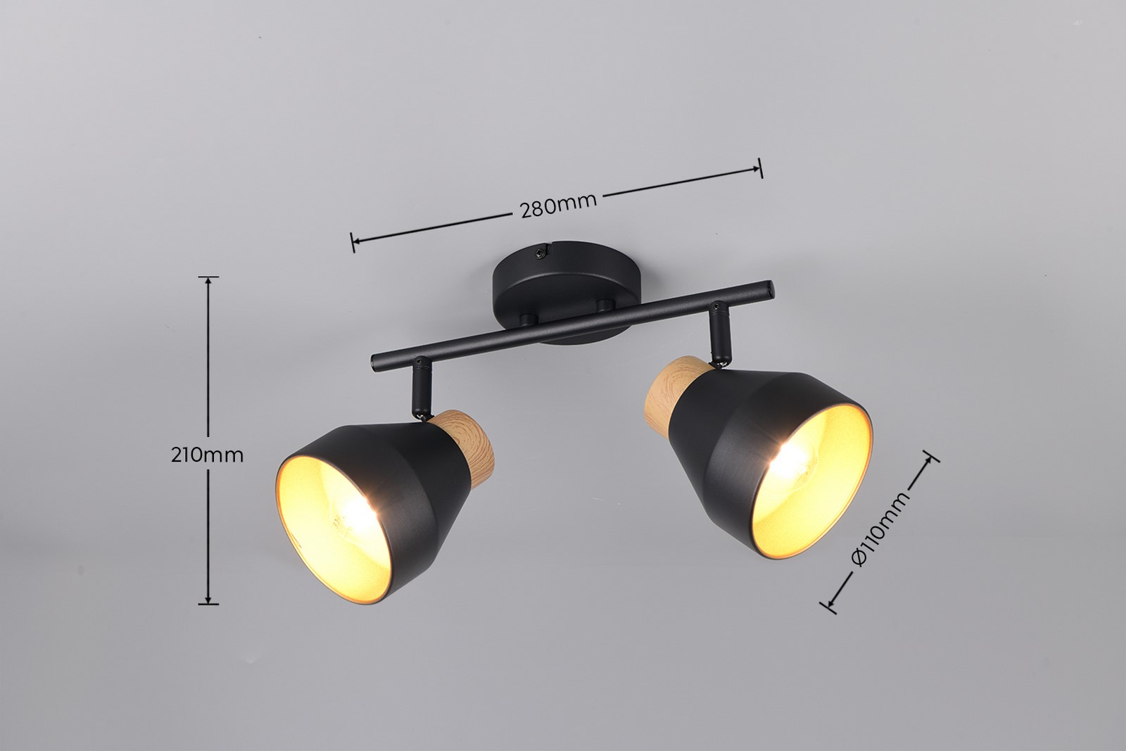 VALENTIN - Reflektorek ścienny 2xE14 - kolor czarny