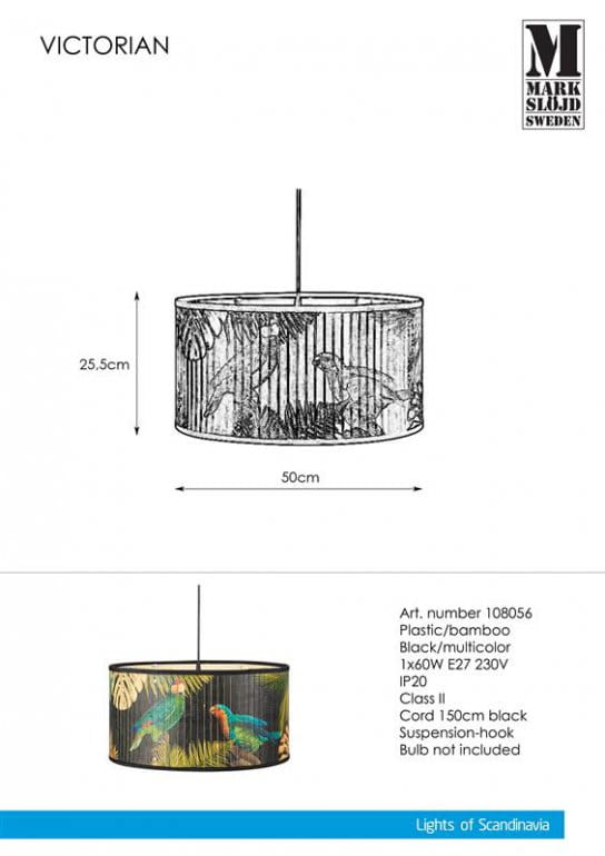 VICTORIAN papugi Ø 50cm E27 Lampa wisząca Markslojd 108056