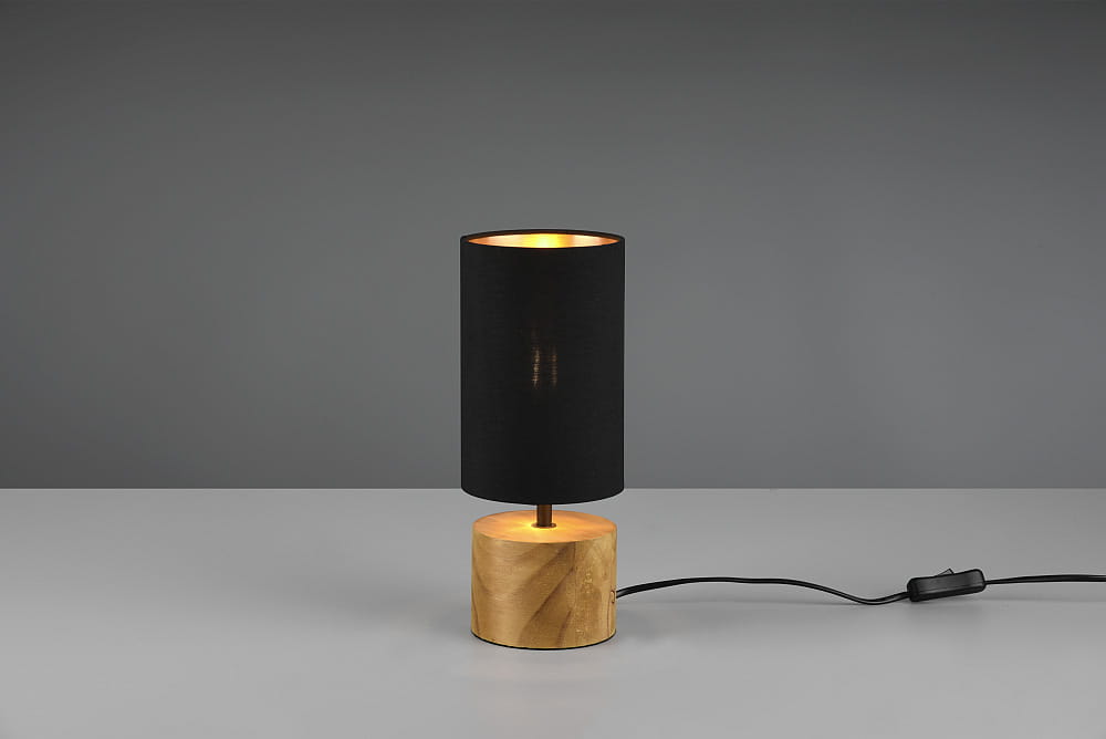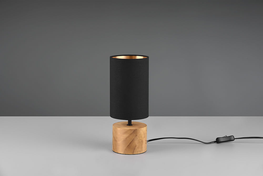 WOODY Czarna / Drewno E14 Lampka stołowa