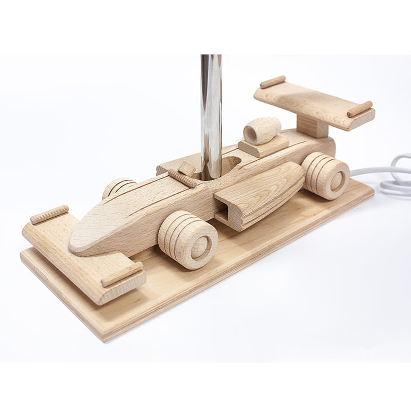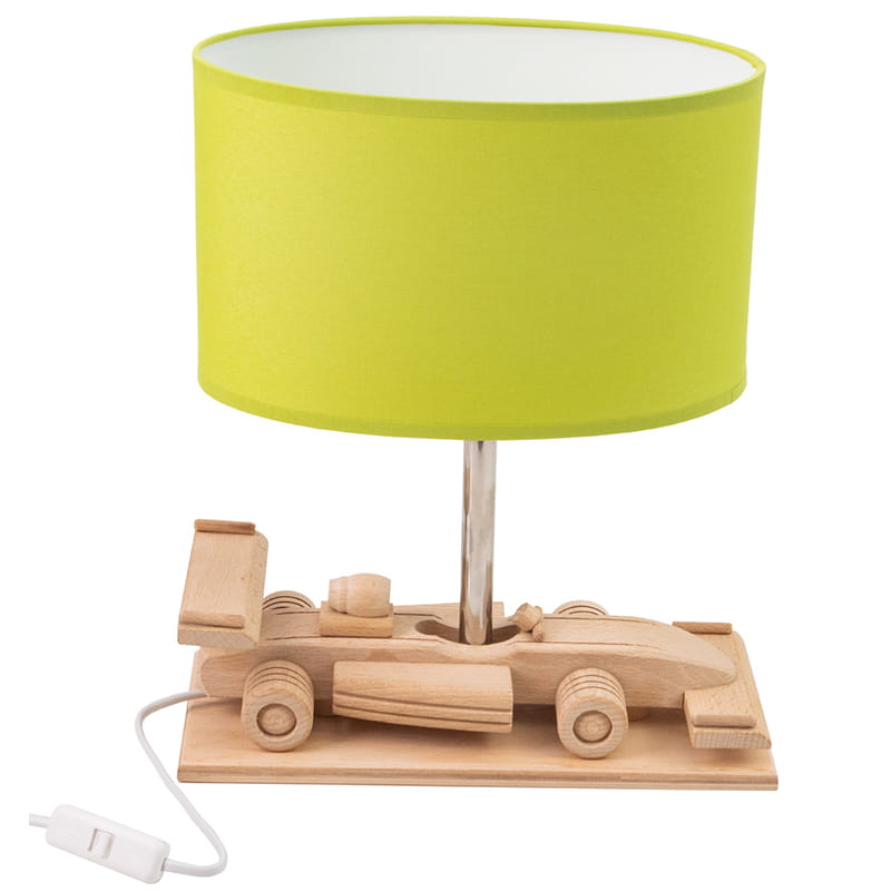 Dziecięca lampka stołowa Autko - Wyścigówka, sprawdzi się nie tylko jako dekoracja pokoju, ale również spełni funkcjonalność podczas zabawy jak i nauki. Oświetlenie wykonane w całości z drewna, swoją prostotą i klasycznym wyglądem idealnie odnajdzie zastosowanie w pokoju dziecięcym na biurku, lub stoliku nocnym, a wzór autka trafi w gusta miłośników pojazdów. Dzięki przepięknemu wzorowi lampka uprzytulni pokój Twojego dziecka! Proponujemy używać żarówek o białej lub neutralnej barwie światła dla lepszego odwzorowania kolorów. Jeśli właśnie szukasz niesamowitego prezentu dla swojego dziecka, ta lampa jest właśnie dla Ciebie!