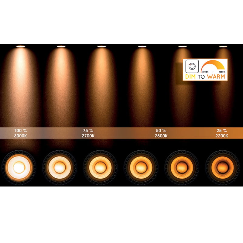 Spot pojedynczy XYRUS Biały LED Dim 5W ściemnialna CRI95 GU10 barwa światła zmienna 2200K/3000K