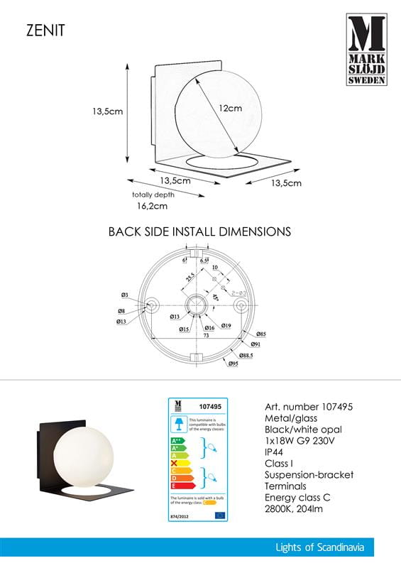 ZENIT czarny | biały G9 IP44 Kinkiet łazienkowy Markslojd 107495