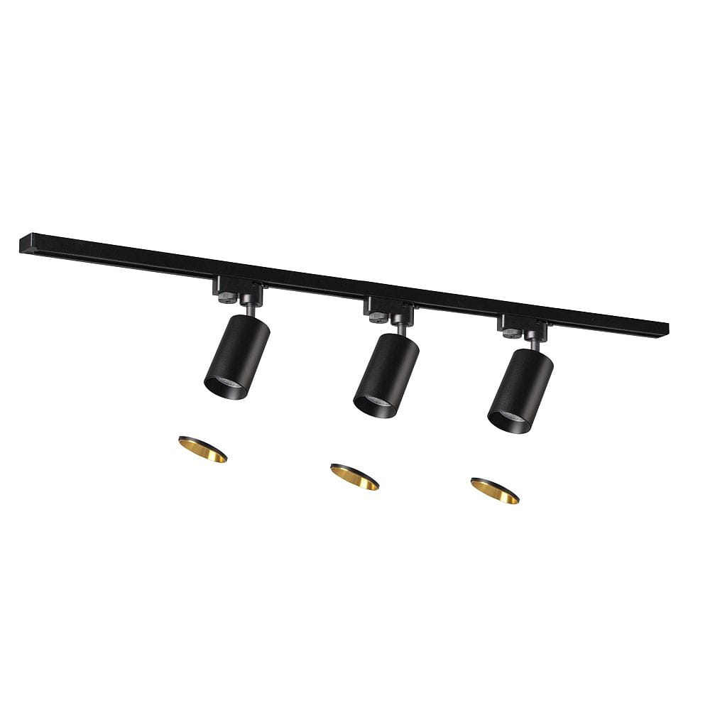 Zestaw szynowy 3x reflektor Maribel czarny | złoty i 1m. szynoprzewodu 1-fazowego