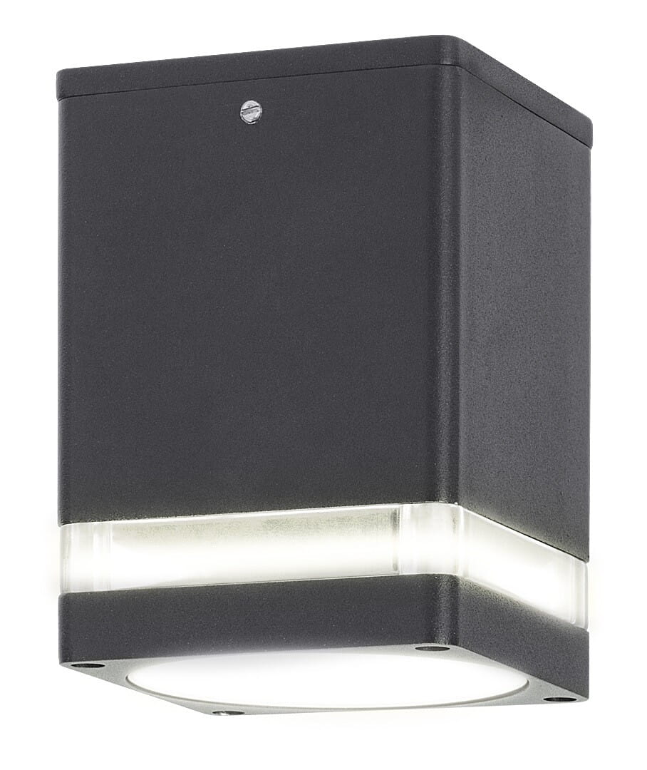 Nowoczesna, pryzmatyczna lampa sufitowa Zombor dostępna w sklepie internetowym z oświetleniem lampynox.pl, wykonana jest z aluminium w kolorze antracytowej szarości. Osobliwością projektu jest to, że ciemną osłonę przełamuje cienki pasek przezroczystego plastikowego klosza. Skierowana ku dołowi lampa to doskonały wybór do oświetlenia Twojego tarasu. Lampę Zombor można użyć z pojedynczą żarówką o mocy do 35W. Typ gwintu: GU10. Aby stworzyć przytulną, intymną atmosferę polecamy zainstalować żarówkę emitującą ciepłe białe światło. Wymiary tej zewnętrznej lampy sufitowej to 90x90mm, jej odległość od sufitu to 120mm. Dzięki stopniowi ochrony IP54, możesz śmiało zamontować ją w miejscach gorzej chronionych przed deszczem i kurzem. Ta lampa jest dostarczana bez źródła światła.